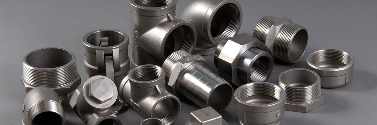 Materials Used In Manufacturing Of Threaded Fittings Includes Stainless Steel, Duplex & Super Duplex Steel, Nickel Alloy, Copper Alloy, Carbon Steel, Alloy Steel, Hastelloy, Monel, Inconel, Titaniun, Incoloy, Alloy 20, 254 SMO, Mild Steel(MS), Brass.